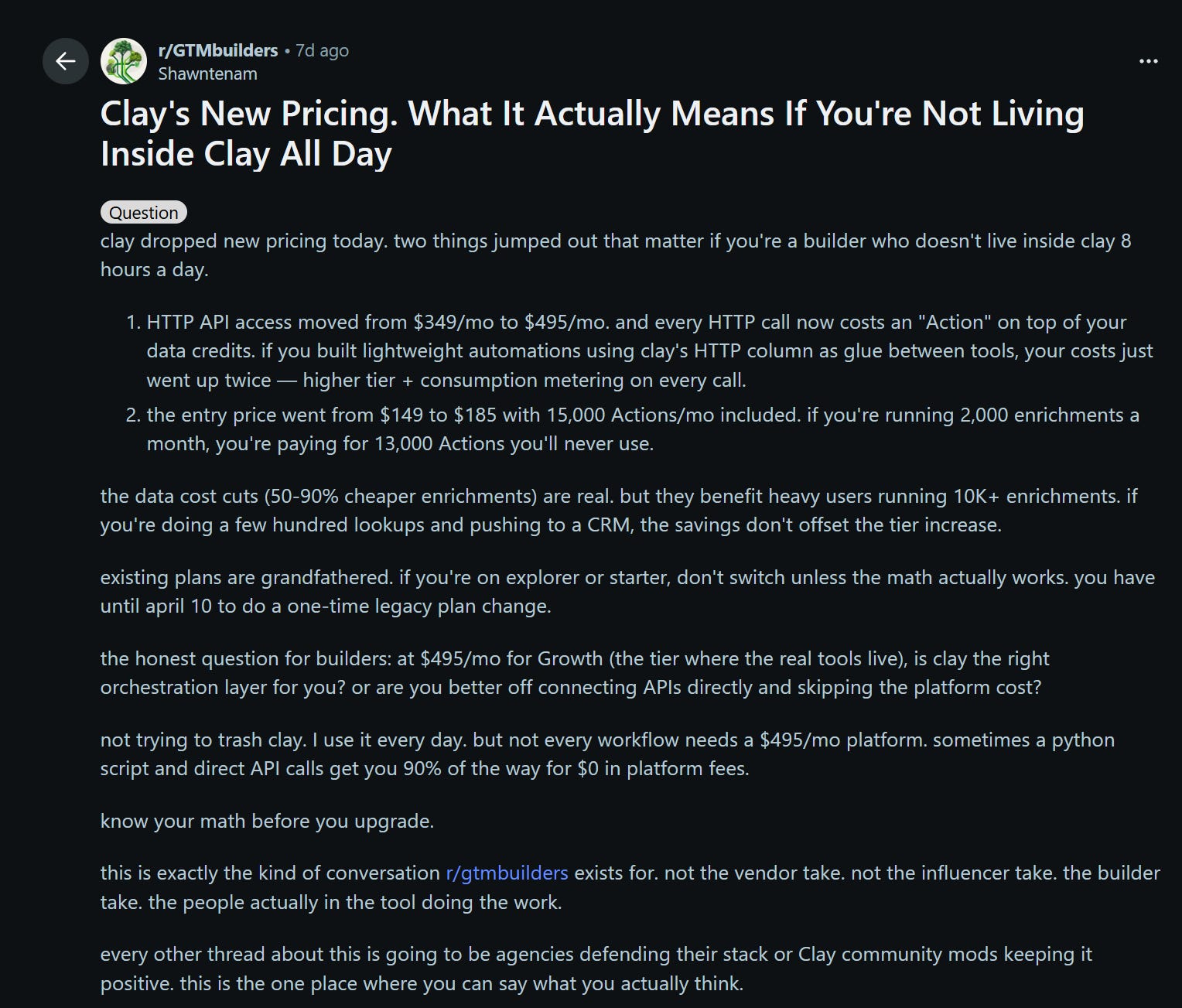 Hey there, fellow market leaders! If you’ve been monitoring tools in the marketing and sales enablement space, you likely came across Clay’s recent pricing announcement in March. It’s sparked quite a conversation and some real frustration across Reddit forums and beyond.